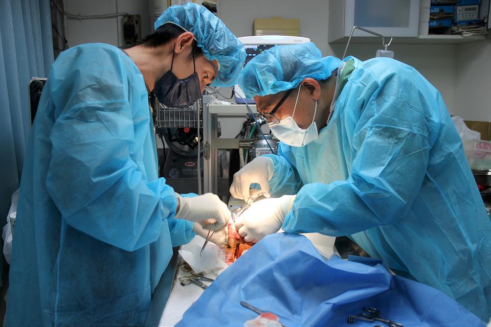 獸醫聯合味重傷虎斑貓進行手術。翻攝新北市政府