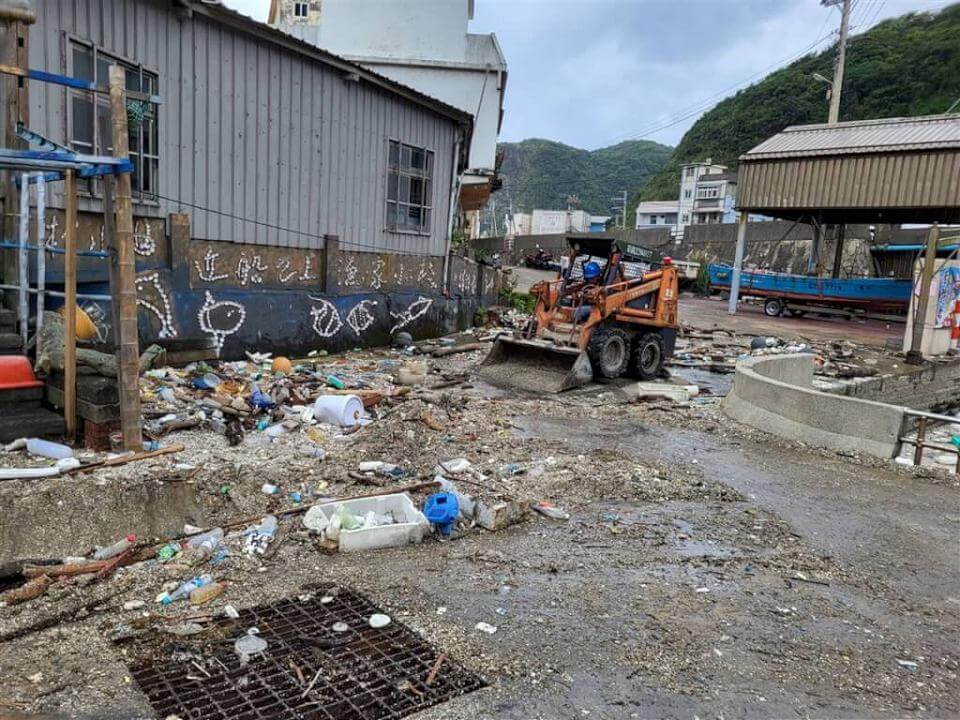 新北市瑞芳區鼻頭漁港,因適逢年度大潮海水倒灌,海水退去後造成海漂物髒亂堆積。畫面讀者提供