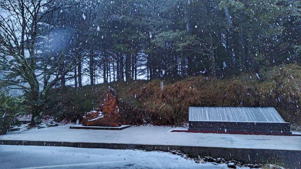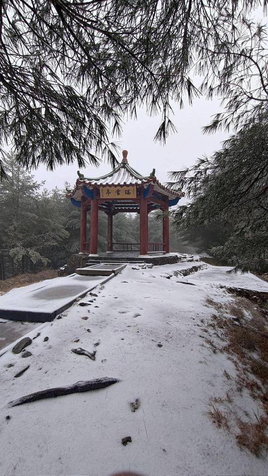 根據大雪山森林遊樂區表示,海拔2000公尺的大雪山國家森林遊樂區,清晨在小雪山資訊站開始飄雪,讓遊樂區覆蓋上靄靄白雪,成為白茫茫的銀白世界,由於部分路段有雨勢加上低溫,路面有結冰情形,所以破冰車隨時待命清除路面結冰,所以在35公里收費站進行入園車輛加掛雪鏈檢查,請追雪民眾配合管制。(記者陳品綸/台中報導)