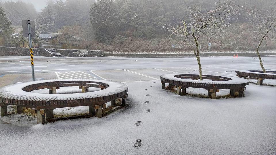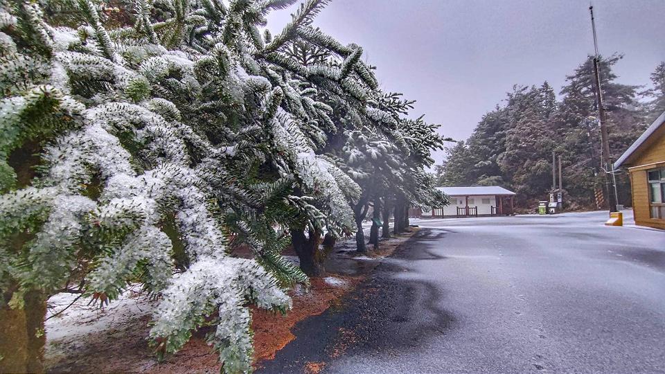 大雪山森林遊樂區成銀白世界。翻攝大雪山森林遊樂區