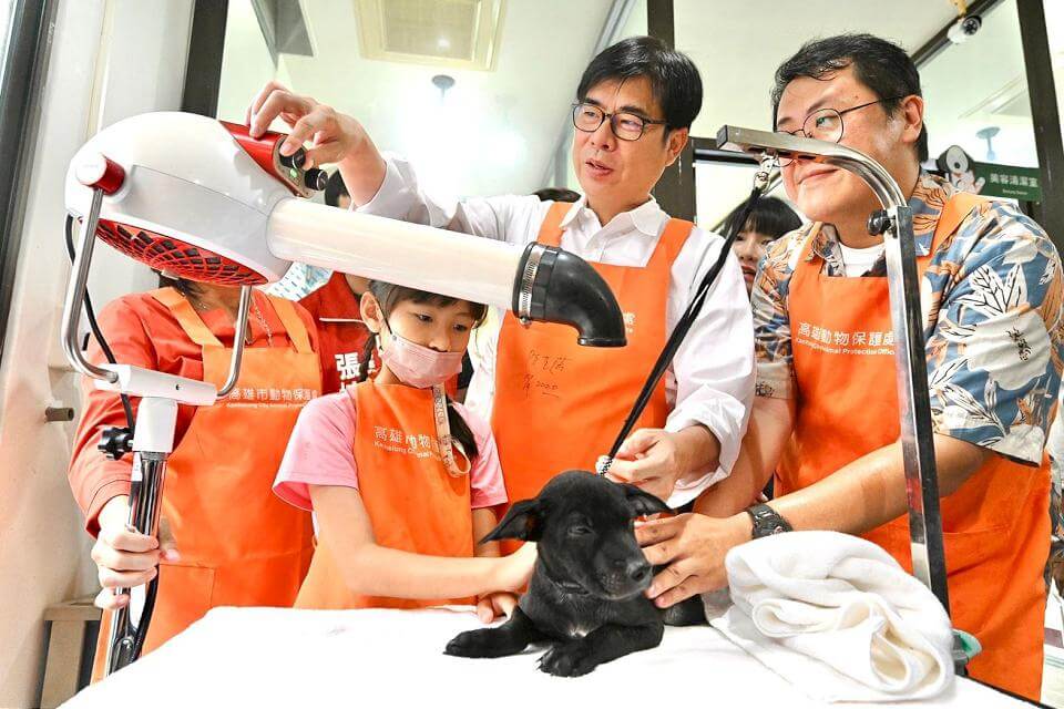 洗狗課程,搓洗、擦拭、烘乾等,能近距離與動物接觸。翻攝高雄市政府