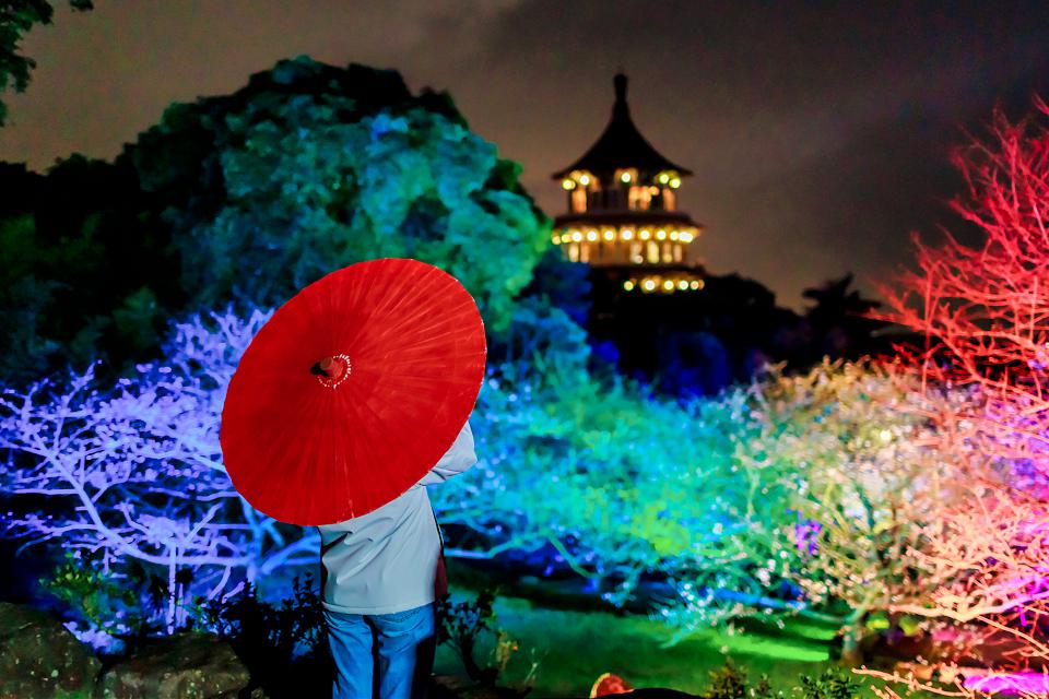 新北市景觀處表示,今年櫻花季活動主題為「新北蒔花好綻-2024花見櫻花季」,花見即是取自日文漢字中賞花之意,將自2月5日(一)起至18日(日)期間,每日下午4:30至晚間8:30於淡水無極天元宮園區,均會點燈開放夜間賞櫻活動,透過光影投射出光雕效果,印襯在櫻花樹上,浪漫沉浸式的氛圍彷彿置身於櫻花花海中。