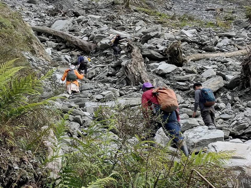 搜尋隊伍在危險崩塌地形行進。翻攝林業及自然保育署台東分署