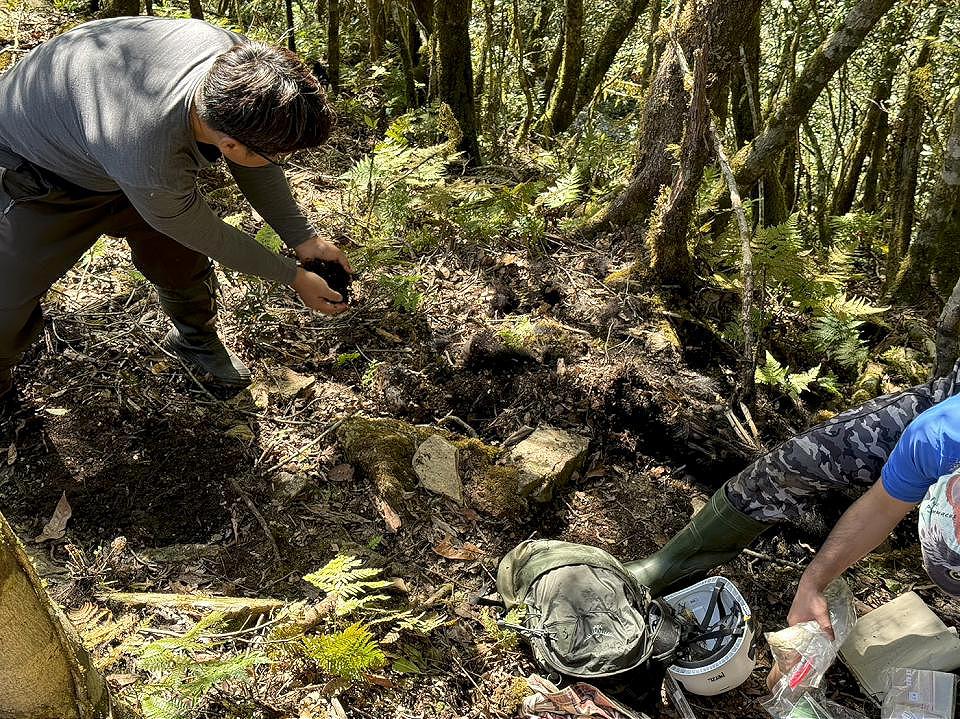 搜尋隊員將Hundiv覆土埋葬長眠殼斗森林。翻攝林業及自然保育署台東分署