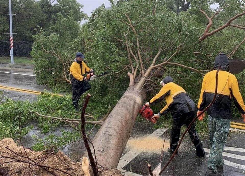 金門災害應變中心表示,杜蘇芮颱風讓金門各地傳出災情,其中以路樹倒塌最多,在總兵署古蹟內的百年老樹,不敵颱風的摧殘直接攔腰折斷,另外還有5000多戶居民暫時無電可用,台電人員正在全力搶修中,為了迅速恢復生活,金防部派出大批兵力,協助居民、鄉鎮公所人員災後重建。(記者黃子瑋/綜合報導)