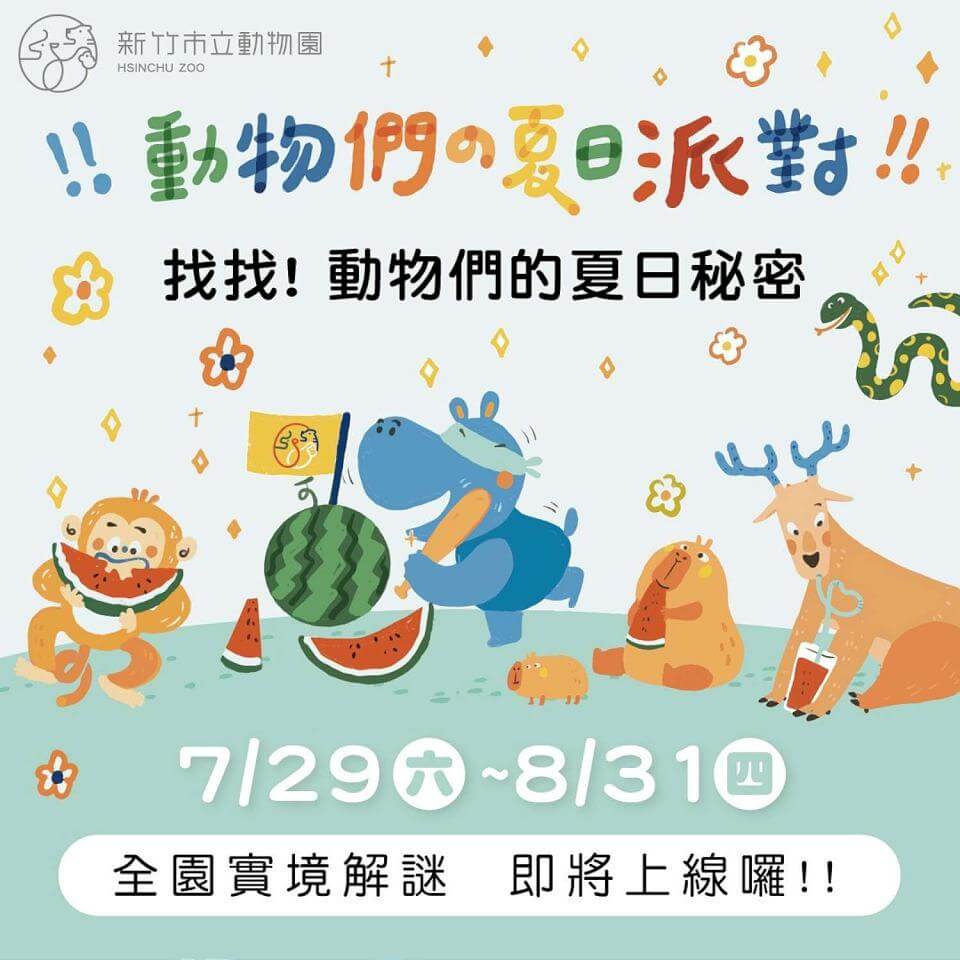今年夏天新竹市立動物園很不一樣!眾所期盼的動物園實境解謎遊戲「動物們的夏日派對」將於29日正式上線,只要於遊園掃描QRcode即可進入遊戲,依指示對照動物園實景破關解謎,完成通關還可至服務台兌換限量動物沙畫。