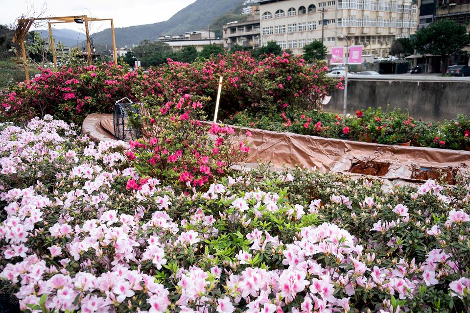 映山園來自杜鵑別稱映山紅,且呼應當地知名的萬里情月老廟,希望讓每個走訪映山園的民眾,都能有好緣的寓意;而園內除種植當季開花的平戶杜鵑外,也搭配球型皋月杜鵑及黑松、櫻花、流蘇、紫薇等植栽,吸引民眾打卡停駐;本次展區計1.5公頃,共種植2萬株平戶、皋月、久留米、台交、西洋等5個品種杜鵑,目前杜鵑陸續綻放,歡迎民眾一同來趟河畔杜鵑饗宴。