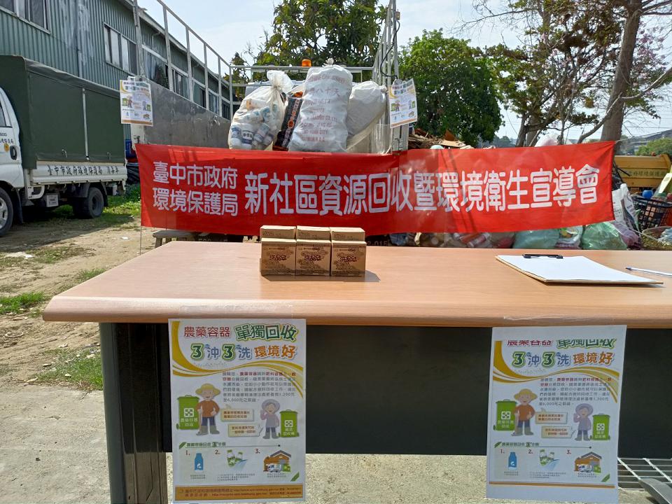 新社區清潔隊推廣廢農藥空瓶兌換培養土或肥皂活動。翻攝台中市政府