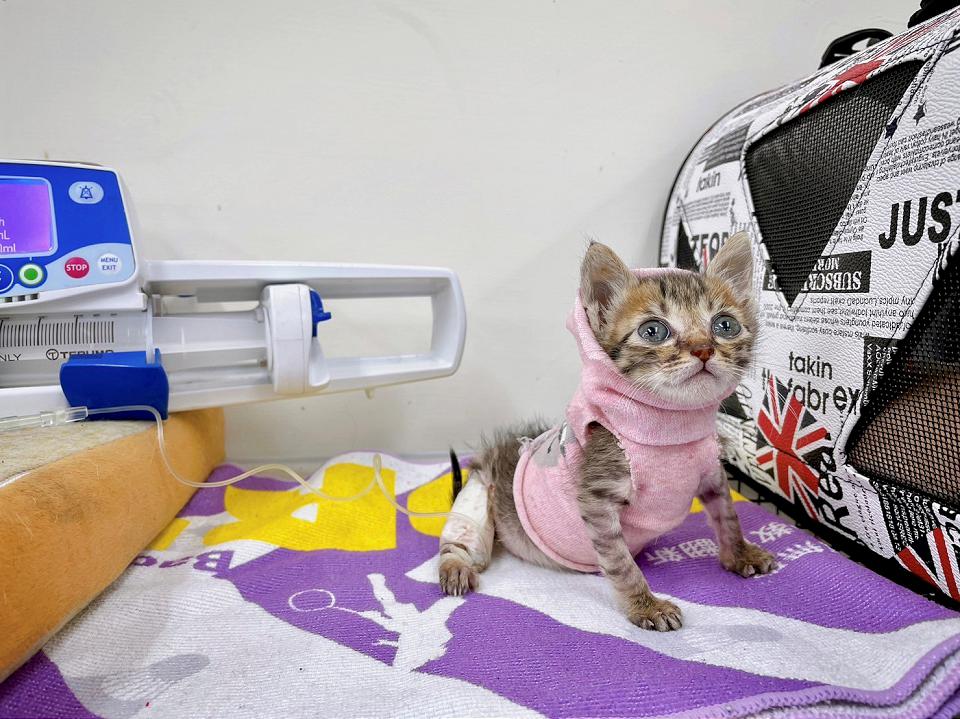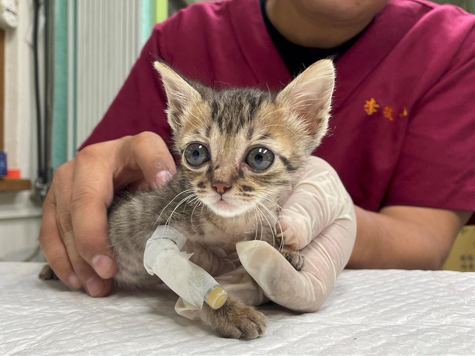 小奶貓罹患貓瘟輸液治療中。翻攝新北市政府