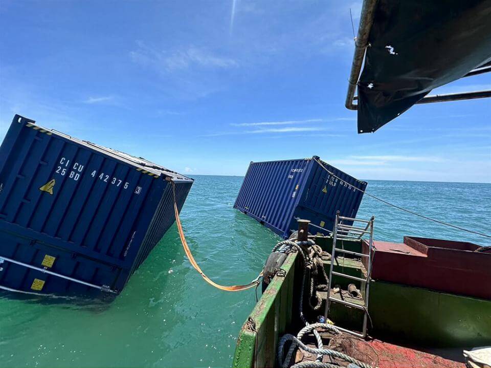 目前「杜蘇芮」颱風朝西北西方向前進,有機會直撲台灣而來,恐影響海漂貨櫃打撈及抽油作業,目前高雄港務局分公司正全力搶救中,希望能在颱風抵達前,將海漂貨櫃拖上岸,避免沉船災情擴大。(記者余珩維/高雄報導)