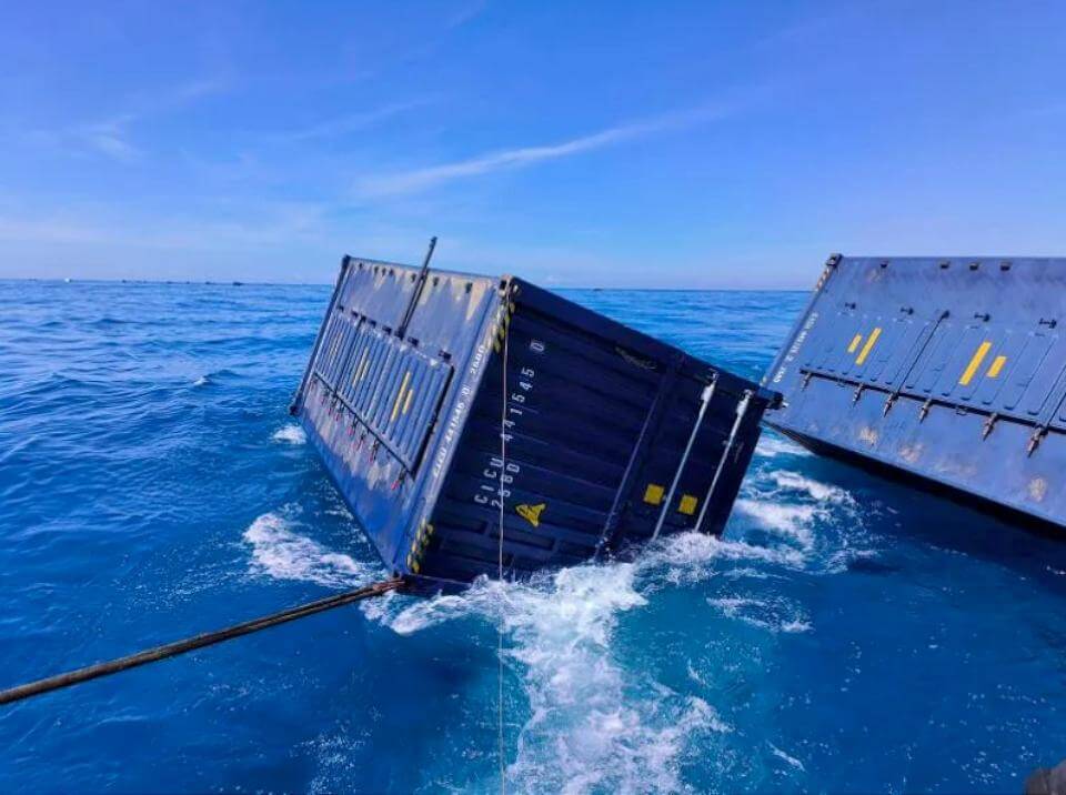 因海流影響,海漂貨櫃正往南飄散。翻攝高雄港務分公司
