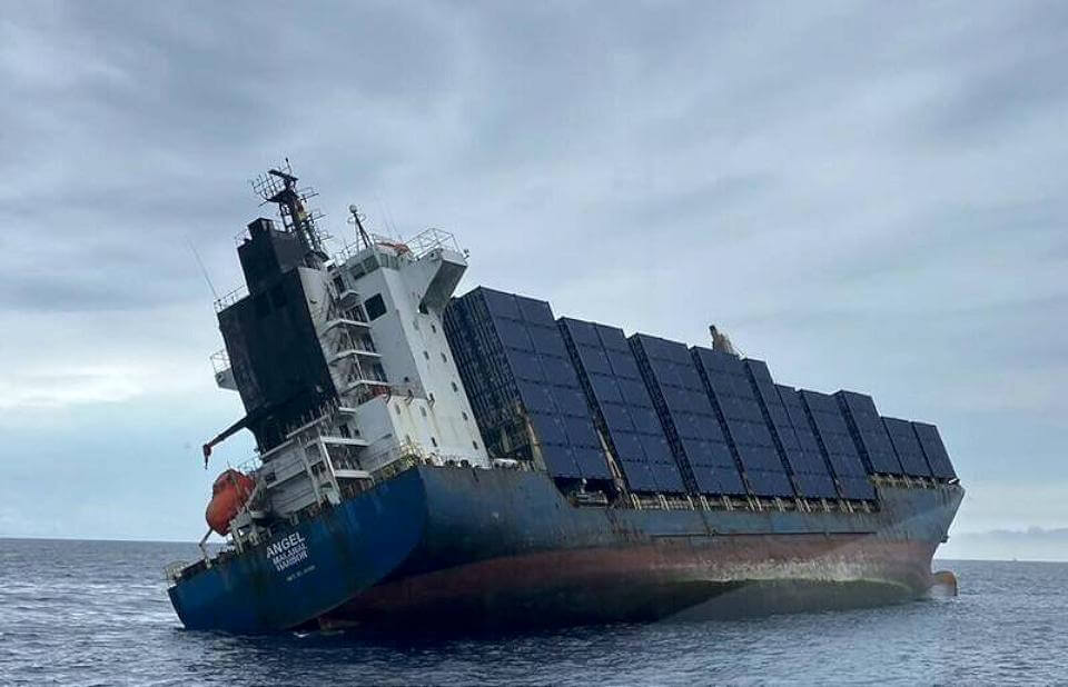帛琉籍「天使(ANGEL)」貨櫃船在高雄港外海,20日因船體進水傾斜,19名船員緊急撤離,直到21日船體沉沒,船上搭載1349只空貨櫃,約有500至600只貨櫃漂流海面,截至21日晚間以打撈26只貨櫃上岸,由於海漂貨櫃散佈相當廣,已經嚴重影響高雄港船隻進出,另外船上油料已部分流出影響生態,加上「杜蘇瑞」颱風接近,高雄港務局分公司正積極搶救中。