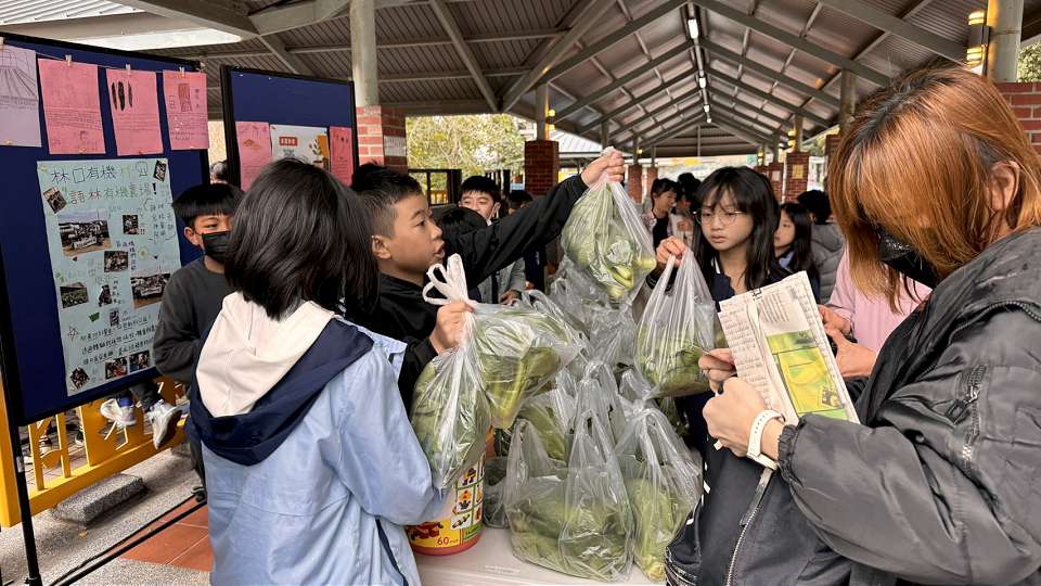 林口青農林芷誼表示,自己是「語林有機農場」第2代,在她12歲時父母林元郁及邱語玲,就帶著她協助農場作物採收及包裝,長大求學期間便利用假日前往市集擺攤,並著手規劃農場的行銷及食農教育。這次與林口新林國小合作,帶領5年級6個班的學生,從種植、除草、施肥、採收到銷售,這次規劃為期約3個月的食農教育體驗,讓學生體驗從生產到銷售一條龍的過程,體驗農夫的辛勞、培養對食物、生產者和環境的尊重與感恩。