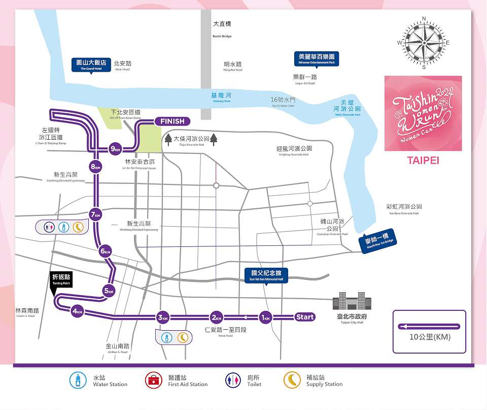 中華民國路跑協會4月14日(日) 5時至10時,在市民廣場及大佳河濱公園舉行「2024 TAISHIN WOMEN RUN TAIPEI」路跑活動,活動期間賽道沿線實施交通管制,禁止車輛通行,因此制路段及時間如下: