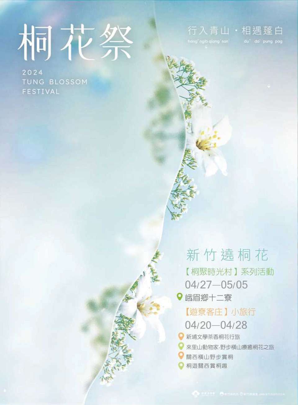 桐花盛開的季節來了!新竹縣政府文化局與新埔、關西鎮及橫山鄉地方合作,結合在地人文、藝術、觀光及產業,推出「新竹遶桐花-遊尞客庄」2024桐花小旅行,規劃4條路線共7梯次活動,將於4月20日至28日陸續登場,讓大家感受在地接待與新竹縣豐厚底蘊的人文與藝術,小旅行報名網站https://www.beclass.com/rid=284d7c365fe96a996573。