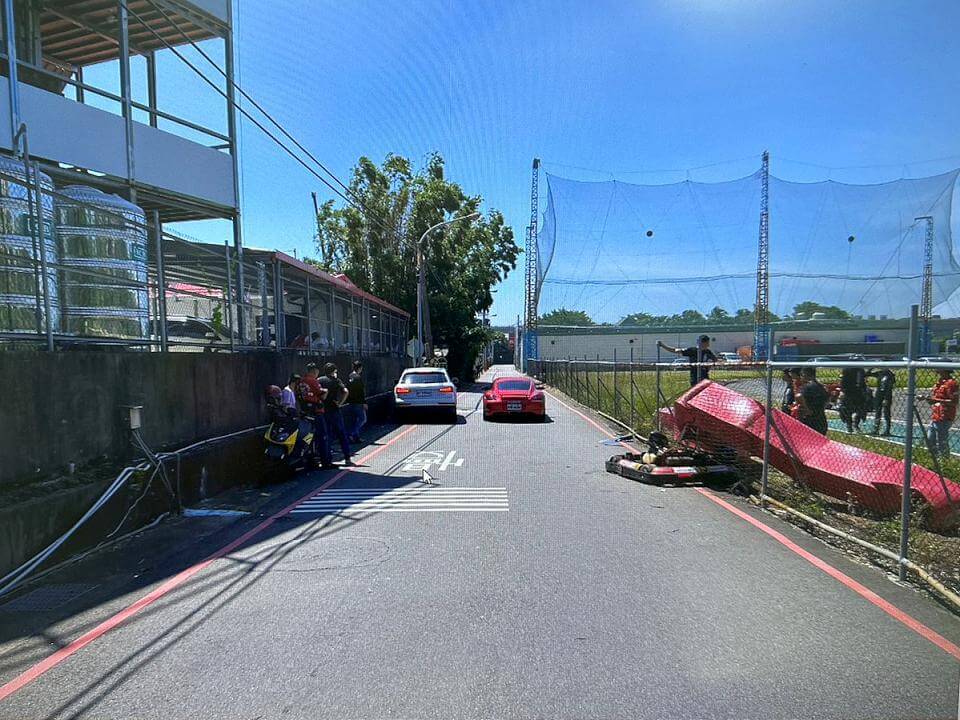 卡丁車衝破場地護欄 撞擊路過保時捷跑車