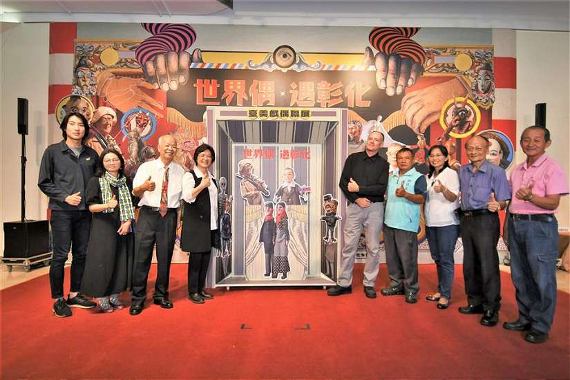「世界偶遇彰化-臺美戲偶聯展」隆重登場!7/12上午在彰化縣立美術館舉行展覽開幕式,這次展覽由縣府和美國西北木偶中心館長Dmitri Carter卡特家族第二代及臺灣布袋戲傳習中心前總監許嘉芬共同策劃,彰化縣長王惠美等人與會。