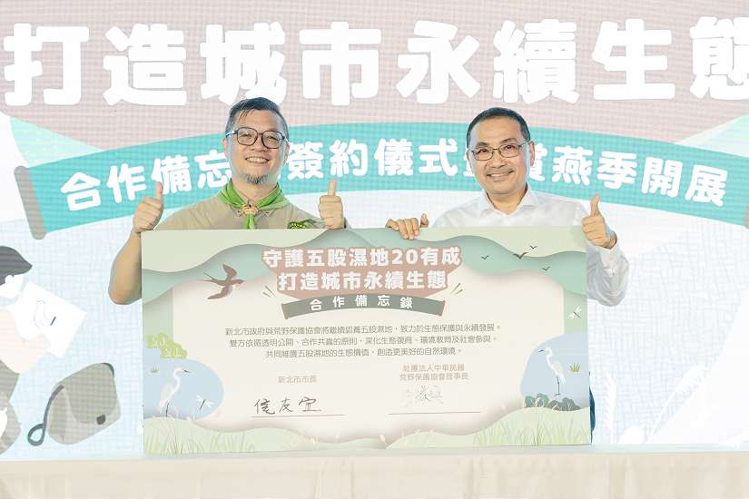 新北市政府高灘地工程管理處與荒野保護協會攜手守護五股濕地20週年,於昨27日辦理「守護五股濕地20有成打造城市永續生態」活動,回顧20年歷史軌跡及簽署合作備忘錄,持續合作推廣生態保育、實現宜居城市的理想,共創雙贏。同時,夏日賞燕季已開跑,邀請市民朋友一起來五股濕地欣賞壯麗的生態美景。