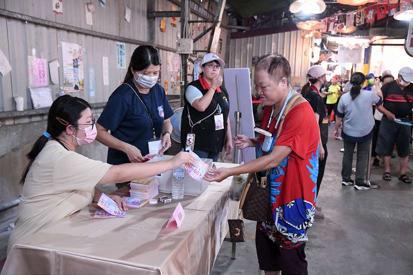 花蓮縣政府於縣內14處市場推出加倍券活動,共同促進市場經濟、活絡縣內需求,於本週五、六日於花蓮縣14處市場再次展開加倍券兌換活動,兌換鄉親十分踴躍,早上六點多就已展開排隊人龍,不到九點便全部換購完畢,市場買氣也絡繹不絕,希望藉此激勵在地消費,活絡市場經濟。
