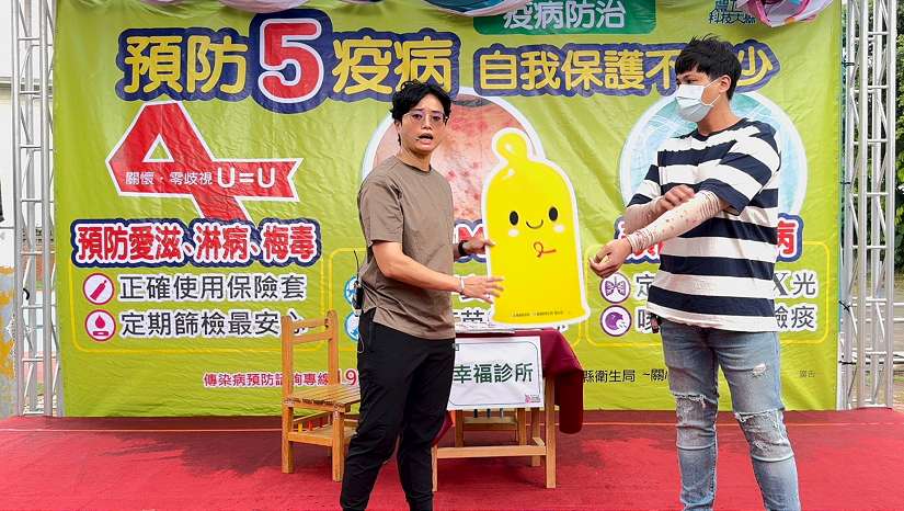 預防愛滋及性病的重要關鍵就是安全性行為,並正確使用保險套及水性潤滑劑,嘉義縣衛生局17日在蒜頭國小社區複合式健康篩檢活動中,宣導「預防5疫病 自我保護不能少」,將愛滋病、梅毒、淋病、M痘及結核病等以行動劇「幸福診所」呈現,呼籲民眾關心健康。