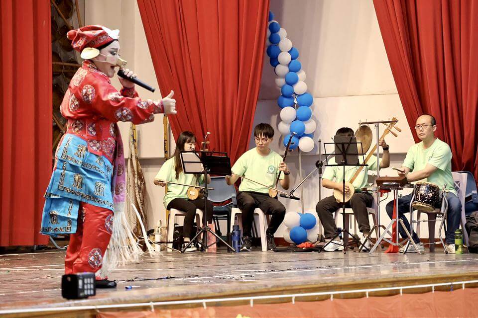 2020新北文化獎得主「民權歌劇團」26日、27日率領成員,前進新北市板橋區的江翠國小及信義國小帶學童瘋文資,傳統戲曲行話「三分前場,七分後場」,前場為演員,後場為文武場樂師,樂師為演員襯托行腔走韻,引領演出節奏,這句話可見樂師在演出現場的重要角色。