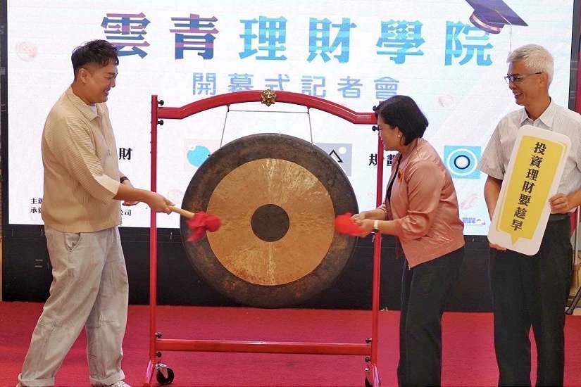 「雲青理財學院」今(30)日上午於縣府親民大廳舉行開幕記者會,縣長張麗善與雲林第一屆青年理財學院首位講者-知名Youtuber【關關】關韶文、勞動暨青年事務發展處處長張世忠、議員陳芳盈助理陳宜盈,在現場眾多青年朋友見證下,一同敲響象徵學院開學鑼聲,宣告雲林青年理財學院正式開課。