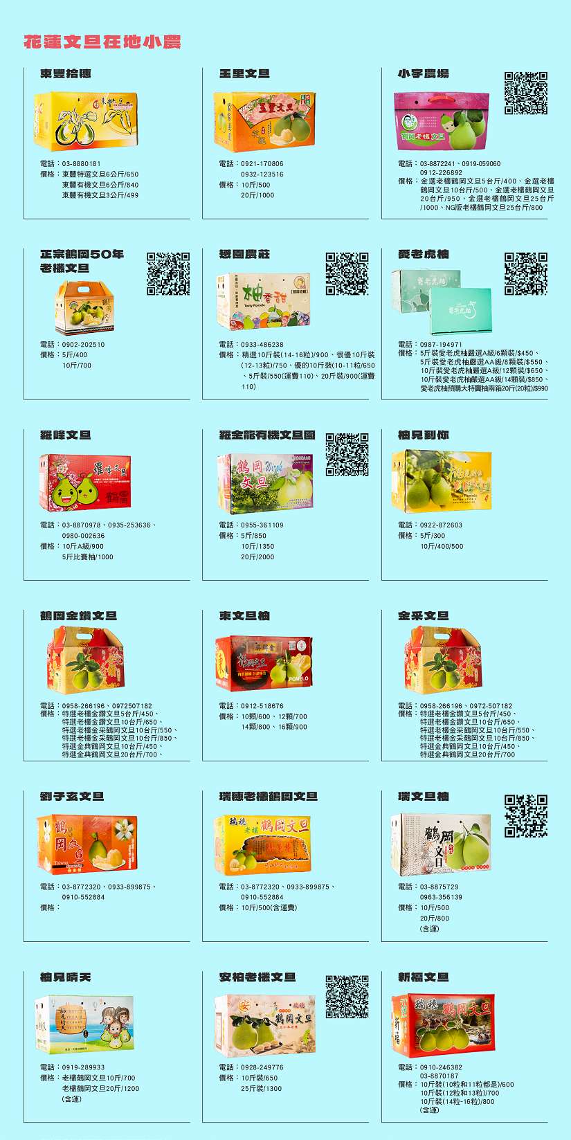 農業處長陳淑雯說明,花蓮縣政府每年度製作花蓮文旦柚型錄,彙整花蓮文旦柚品牌,方便消費者進行購買,而除了國內市場,縣府今年度繼續辦理外銷補助,給予在地農友最直接的支持;陳淑雯說,歡迎大家在日常生活與中秋佳節和親朋好友一起分享當季新鮮的花蓮文旦柚。(2024年花蓮文旦柚型錄:https://2024hualienfruit.com.tw)。