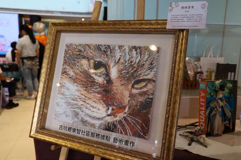 當日活動會場上展示古坑鄉樂智社區服務據點長者精彩藝術畫作-圖/雲林縣政府提供