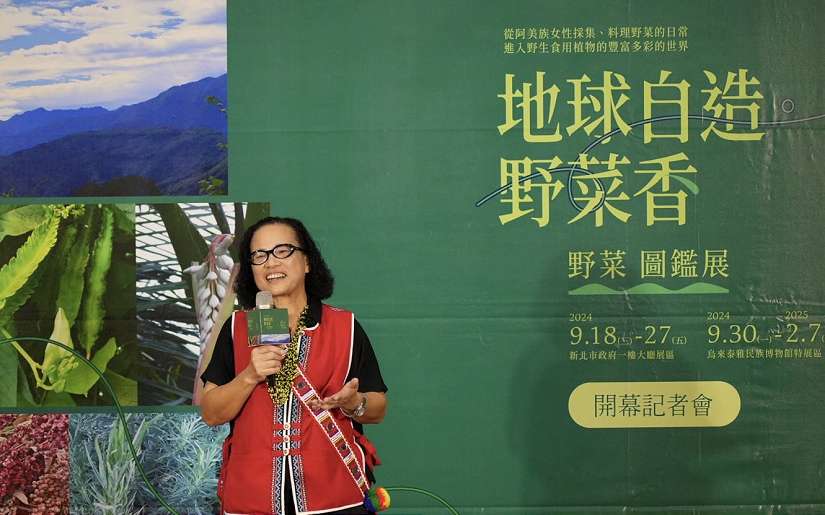面對氣候變遷導致糧食安全受到威脅,解方之一就在民間,像是能耐鹽抗旱的台灣原生種作物-紅藜、小米及油芒,大多藏種於原住民族部落,吃苦耐勞的的野菜也將愈趨頻繁地出現在大眾餐桌上。新北市原民局為推廣原住民族野菜文化,特別邀請有「野菜教母」之稱的阿美族人Dongi Kacaw吳雪月,共同策畫「地球自造野菜香」野菜圖鑑特展,於昨日(18)舉辦開幕記者會,透過把野菜帶到車水馬龍的都會區,並將阿美族的野菜文化知識化繁為簡成圖鑑,也現場分享私藏野菜食譜,希望帶給民眾一場天然原味的野菜饗宴。