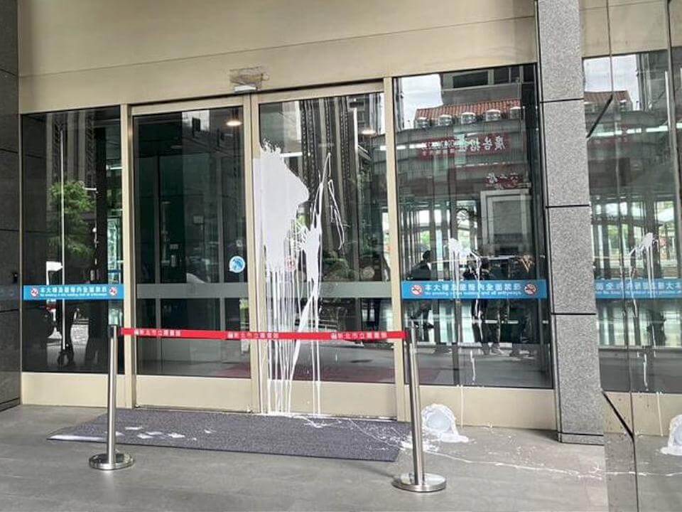 新北市府南側大門遭潑漆 男子犯案後騎車逃逸