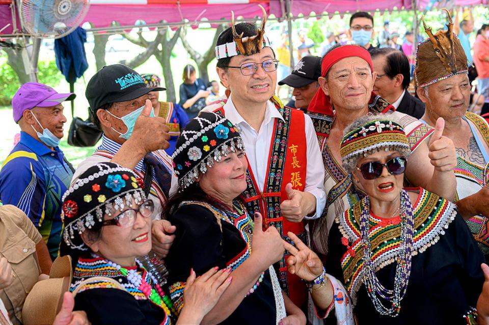 桃園市長張善政27日上午出席「布農族射耳祭(Malahtangia)」活動。翻攝桃園市政府