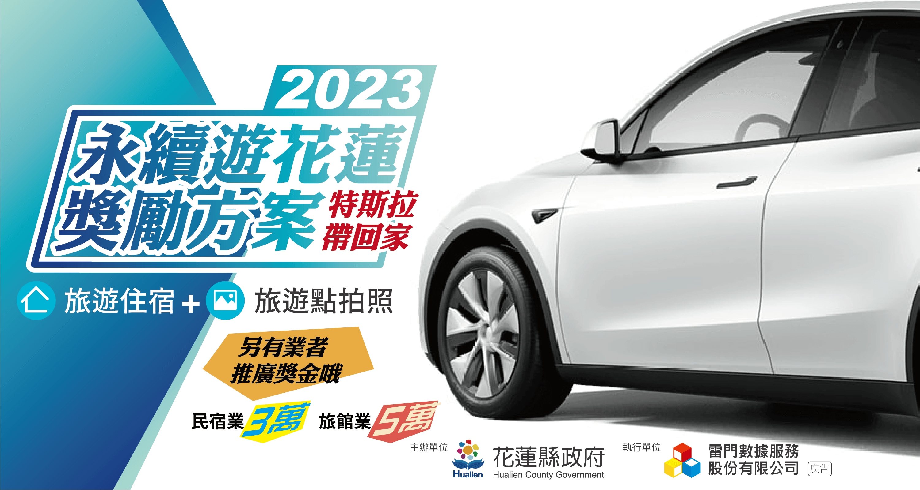 「永續遊花蓮獎勵方案」自由行抽特斯拉汽車活動。翻攝花蓮縣政府