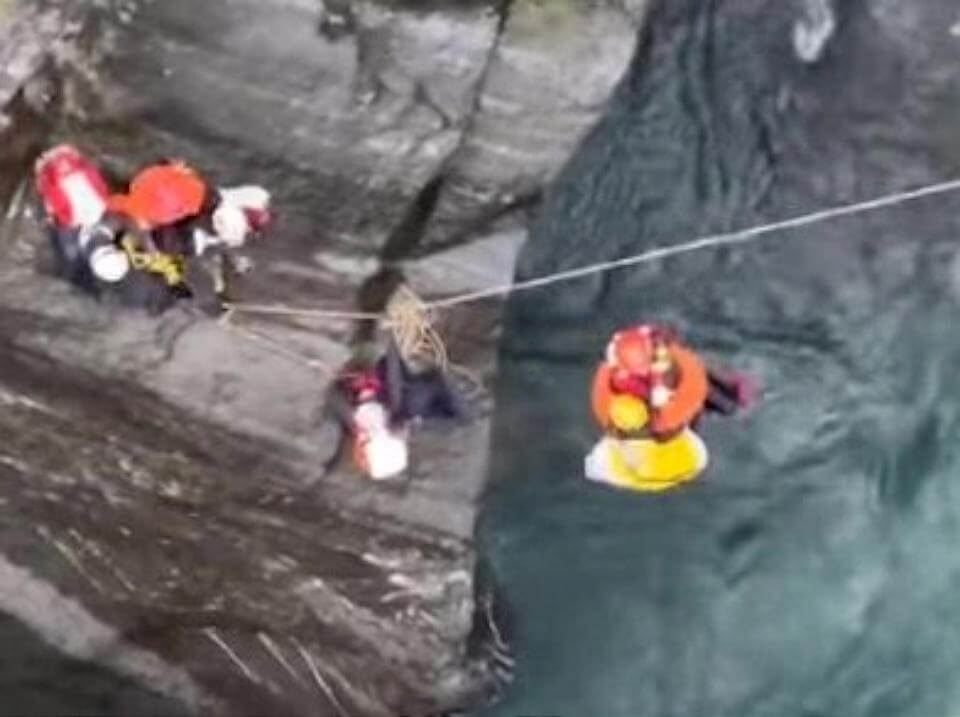 屏東霧台鄉飛龍瀑布有10人溯溪團,20日因為大雨造成溪水暴漲,導致有5人失聯5人攀爬岩壁待救,消防局21日申請直升機吊掛救援,先順利將5名受困者救出送醫,另外失連的5人持續救中。