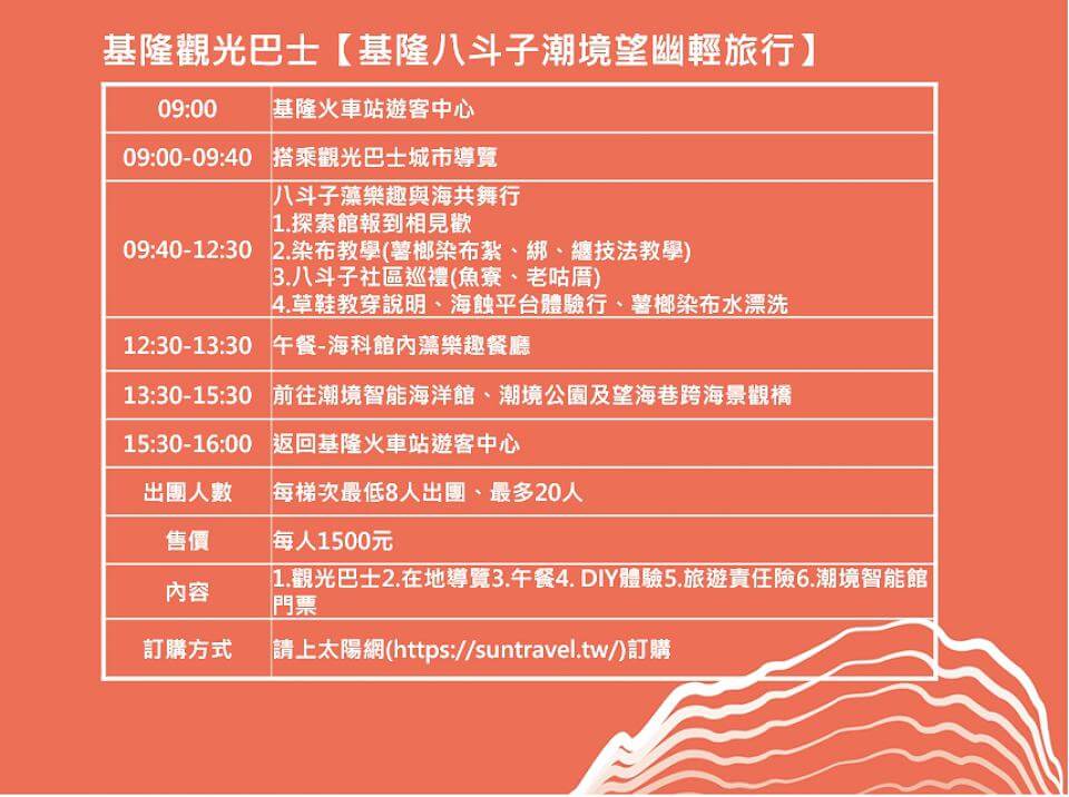 基隆巿政府日前以郵輪為號召,推出全新的「渴望遊基隆」觀光品牌外,在基隆嶼開放登島觀光,4月以基隆嶼限定3大視角新玩法吸引旅客,這次從5月1日起推出觀光巴士深度體驗遊程,並主打5月打8折優惠,想嘗試搭觀光巴士深入賞盡基隆之美的朋友,千萬要把握機會。