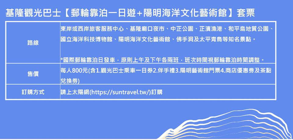 基隆市推出套票搭觀光巴士暢遊。翻攝基隆市政府