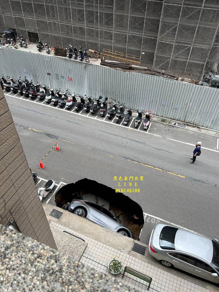 新竹縣竹北市莊敬六街27日上午發生路面地基掏空,形成一個巨大天坑,1輛停在停車格內的特斯拉轎車,當場被吞噬側躺在天坑內,所幸當時車內沒人,但這起意外卻引起附近居民不滿,將矛頭全指向一旁的新建案惹禍,因為新建案周邊道路,去年就陸續發生3次道路坍塌意外,至於坍塌原因還需要進一步釐清。
