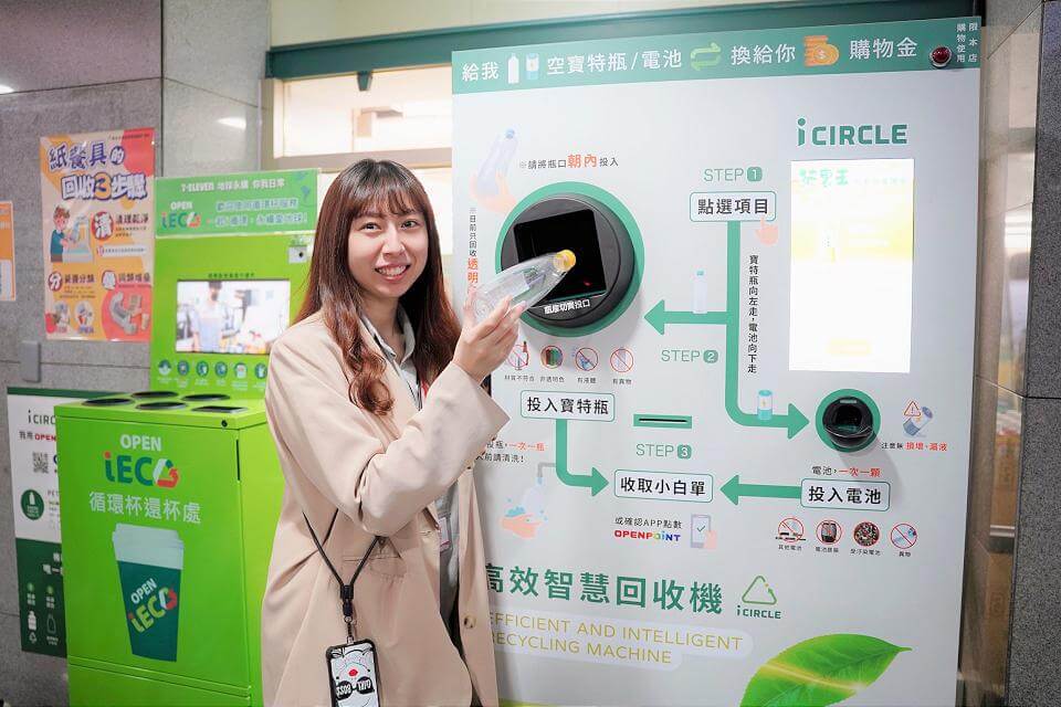 新北市政府地下一樓的7-11超商新北市門市,成為全國第1家完整循環經濟建置設施的標竿門市,設置了「I circle高效能智慧回收機」可回收寶特瓶及電池,還有「OPEN iECO循環杯機」及販售寶特瓶回收再製品的「永續商品專區」,期建立民眾循環經濟、綠色消費的觀念。