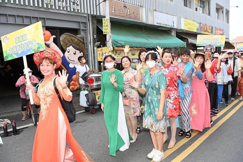新住民穿著具民族代表性的服飾,組創意踩街隊伍漫步水上鄉。翻攝嘉義縣政府