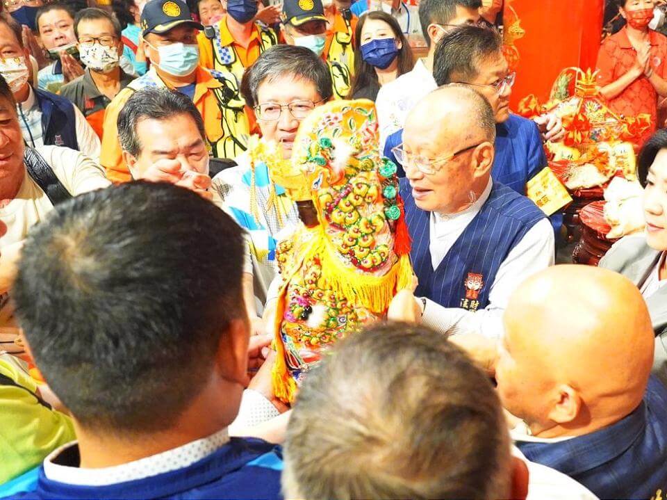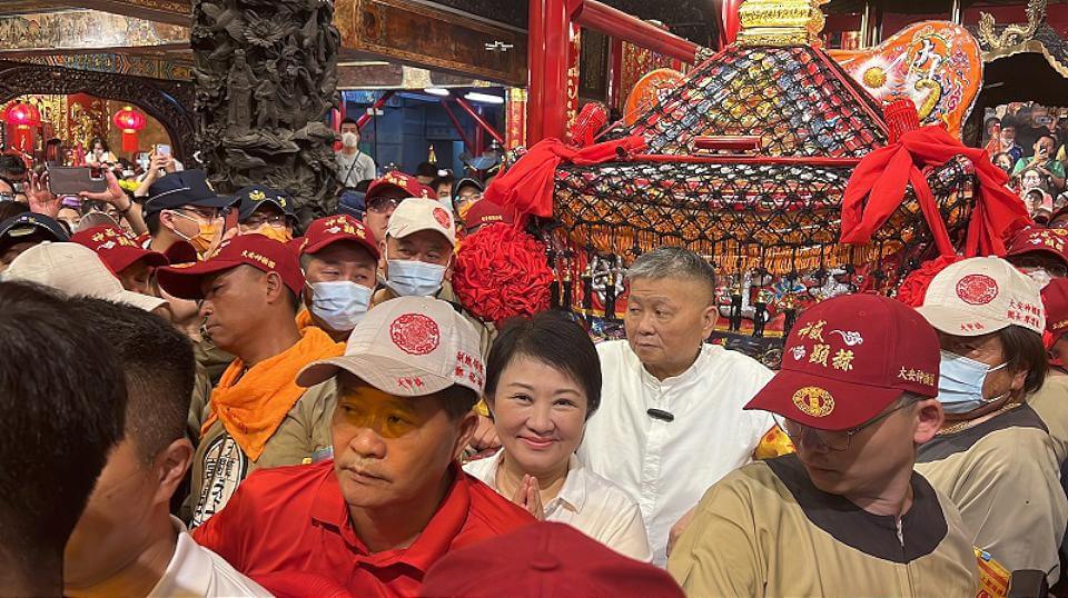 台中市長盧秀燕與鎮瀾宮董事長顏清標恭迎媽祖起駕。翻攝台中市政府