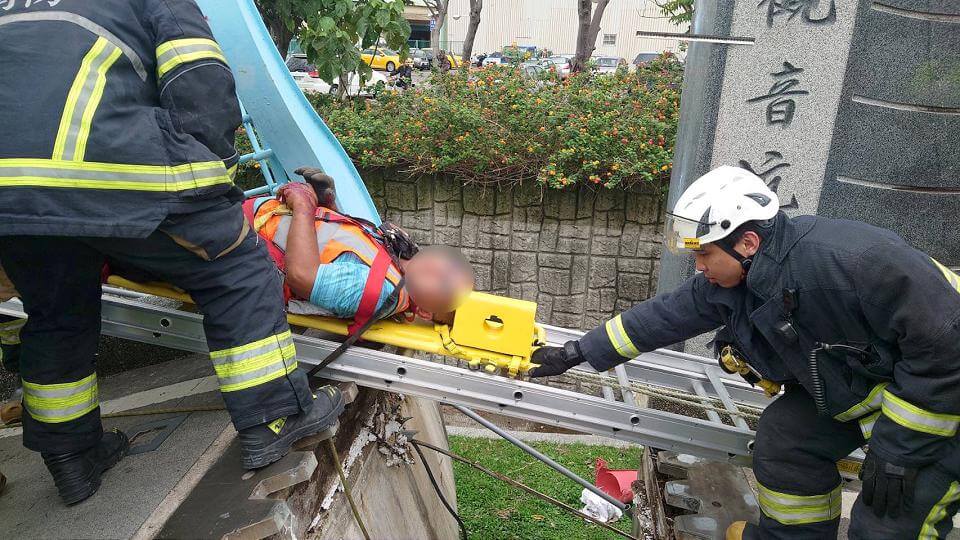 消防人員搶救受傷的工人。畫面讀者提供