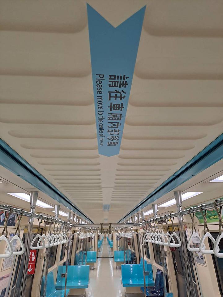 台北捷運公司表示,為持續辦理電聯車空間優化,參考韓國、新加坡等國外地鐵作法,先在中和新蘆線試辦改裝2部列車,移除第2至5節車廂車門前方中央立柱,車廂上方環形扶桿、手拉環均保留,讓攜帶大型行李、嬰兒車、使用輪椅的旅客進出更便利;年長者、孩童或是有需求的旅客,可多加利用座位、車門兩側的立柱或扶手,維護乘車安全。