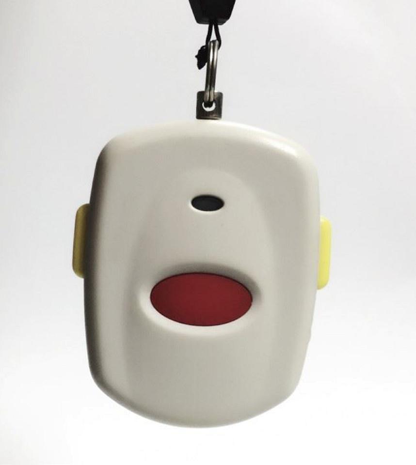 獨居老人「緊急救援連線」服務,只要按下訊號發射器,監控中心就能接收訊息,提供24小時緊急救援服務。翻攝嘉義縣政府