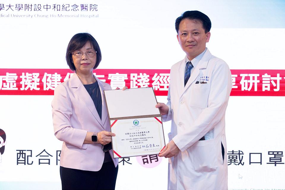 健保署感謝高醫積極協助推動,熱心分享經驗,由健保署林淑華組長(左)致贈感謝狀給王照元院長。(圖/高醫大)