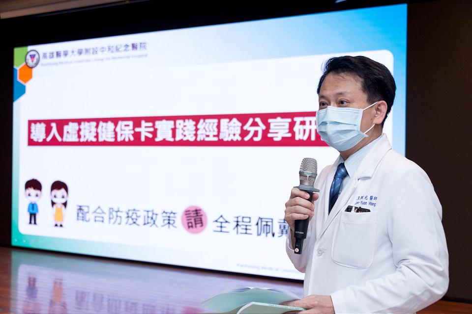 今(6)日與健保署共同辦理「2023年導入虛擬健保卡實踐經驗分享研討會」,由高醫大附設中和紀念醫院王照元院長主持,與會人員尚有中央健康保險署高屏業務組林淑華組長說明健保數位轉型政策,高屏地區逾50家各層級醫療院所、逾百人參與。