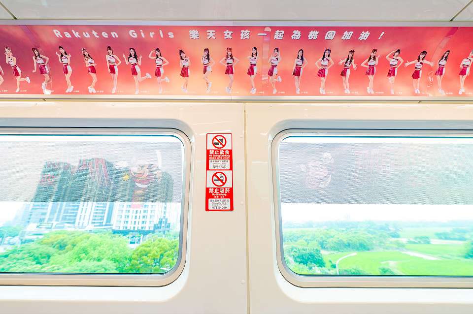 樂天球員、啦啦隊女孩都在車廂看板可以找到。翻攝桃園市政府