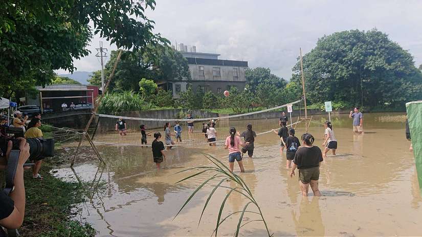 2023水梯田排球趣味競賽-學生進行激烈的水梯田排球賽-圖/新北市政府提供