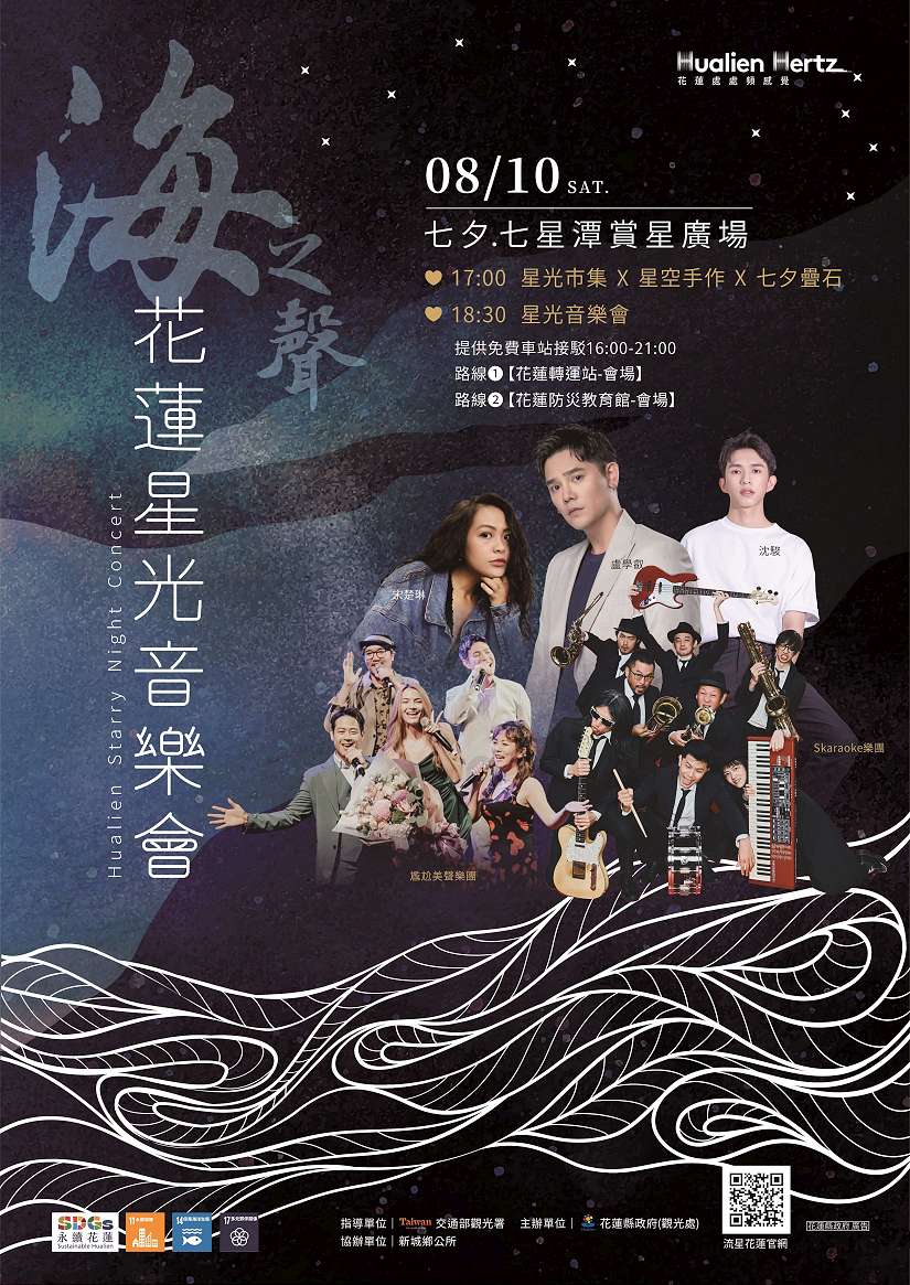 縣長徐榛蔚邀請大家帶上野餐墊,在七星潭賞星廣場旁海灘上的療癒音樂饗宴,在音樂的洗滌下感受花蓮山海的美好,欣賞由花蓮縣天文協會理事長陳冠榮在浪濤的波浪聲中導覽星座、認識星空,深入瞭解花蓮的美麗夏夜星空。