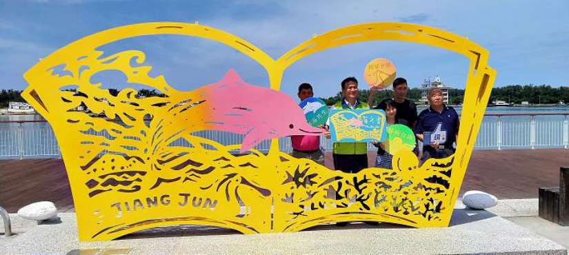 農業局進一步說明,將軍漁港「海之書」以黃色為主題色,臺灣白海豚部分,以粉色漸層點綴,透過與海洋為互補色的搭配,來提升藝術品的亮點,以臺灣白海豚與海景繪本的創意,訴說將軍漁港在地漁人與自然生態一生懸命的故事,期盼喚起人們對海洋保育的關注,並以版畫風格,刻劃出遊的期待與興奮,鏤空設計可減少風力反射對鳥類之影響,期盼為將軍漁港帶來兼具友善與不同層次之遊憩體驗。