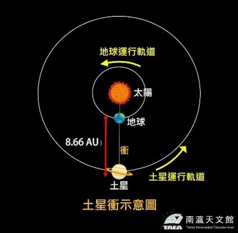 南瀛天文館補充說明,所謂的「行星衝」,是指行星、地球與太陽依序排成一條直線,且行星和太陽的赤經相差180度的天象;除了土星外還有位於太陽系邊際的海王星也將在9月21日到達衝的位置,屆時距離地球28.89 AU,亮度7.8等,位於雙魚座,建議用高倍率天文望遠鏡挑戰觀察這顆深藍行星;9月5日將有水星西大距,和太陽相距18.1度、位於獅子座,可於日出前往東方地平線上方尋找它的身影;而9月17日中秋節當天則有土星合月,兩星相距約18角分、土星亮度0.6等、位於寶瓶座,日落後將於東方低空現蹤,每週六夜間於觀測館都會提供免費夜間星空導覽解說(19:00~20:30),歡迎對即將到來的天象有興趣的民眾到館體驗!