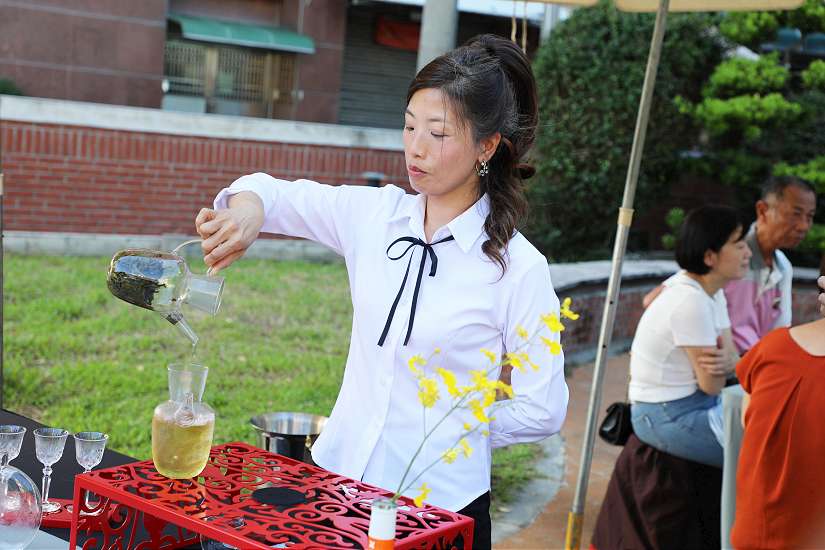 嘉義縣是台灣重要的茶葉生產地,茶文化更是嘉義縣的重要象徵,以山線的茶,結合海線的水意象,為了將茶文化推廣至更豐富的年齡層,特別邀請嘉義縣茶道花藝推廣協會推出極具特色「雙主題」百人茶席,民眾逛市集也能在茶世界享受「五感體驗」。